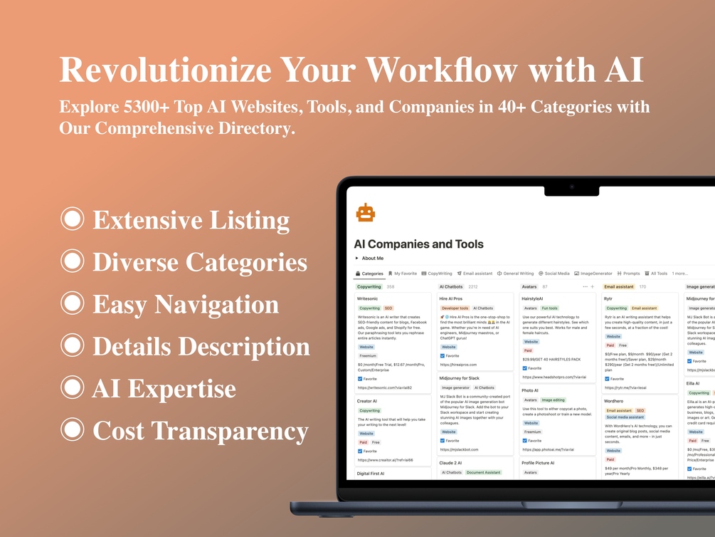 - Extensive Listings: Access a vast collection of 5300+ top AI resources, from cutting-edge tools to pioneering companies, each offering detailed pricing information.