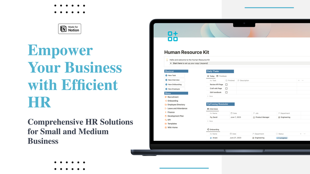 - HR Kit: Streamline your human resources processes with the HR Kit. From employee onboarding to performance tracking, this template is your go-to resource for efficient and organized HR management.
