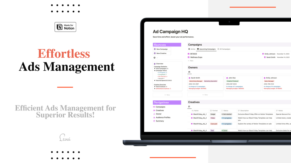 - Ad Campaign HQ: Propel your marketing efforts to new heights with the Ad Campaign HQ. Track, analyze, and optimize your advertising campaigns in one centralized space, empowering your marketing team to make informed decisions.